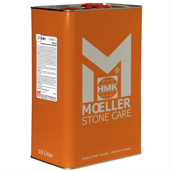 Σε περιπτώσεις που σε ορισμένα τμήματα της επιφανείας του πετρώματος παρουσιάζεται υπερβολική ψαθυρότητα που φθάνει σε αποκόλληση, οι φολίδες αυτές θα πρέπει να αφαιρεθούν πριν την εφαρμογή του S741. Απλώνουμε σε στεγνή και καθαρή επιφάνεια το S741 με μια βούρτσα ή ένα ρολό. Επαναλαμβάνουμε τη διαδικασία αρκετές φορές και πριν στεγνώσει η προηγούμενη στρώση, έως ότου κορεσθεί το πέτρωμα. Προστατεύουμε την επιφάνεια από βροχή και από έντονη ηλιακή ακτινοβολία για μια εβδομάδα περίπου, ώστε η υγρασία να πολυμερίσει με επιτυχία το S741 σε SiQ3, το γνωστό Quartz. Πλήρης σκλήρυνση επιτυγχάνεται 2-3 εβδομάδες μετά την εφαρμογή. Η σκλήρυνση δεν προστατεύει από απορρόφηση λεκέδων και νερού γι’ αυτό πρέπει να ακολουθεί αδιαβροχοποίηση με S234.